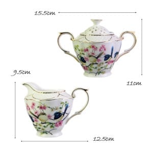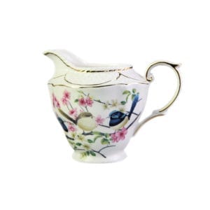 Tea party season is upon us! Set your table in beautiful, vintage European style with this Blue Wren Ceramic Sugar & Creamer Set which included a sugar bowl and a creamer. The simplicity of the shape with the delicate pink blossom, twitter blue wrens and green leaves pattern make this set a wonderful choice for someone who prefers a less fussy, more tailored look. The gold rim edge lines make this set a bit more contemporary. This Teaware served in beautiful gift box packing, ideal for Mother’s Day gift and good dessert time with family and friends!