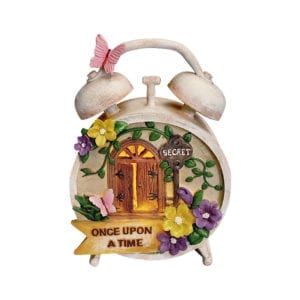 It uses sunlight! This fairy house charges the battery by day and turns on automatically at night, saving on the cost of electricity in your home.