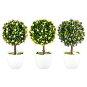 This 15 x 27cm Artificial Pot Round Flower Tree features an artificial plant with cute round bush and tiny flowers. It is great for creating a floral theme home. The white pot sets the plant off nicely by exaggerating its colours. You can choose either Pink, Yellow or Purple flowers. Get these unique beauties now to turn your house into a lovely place.