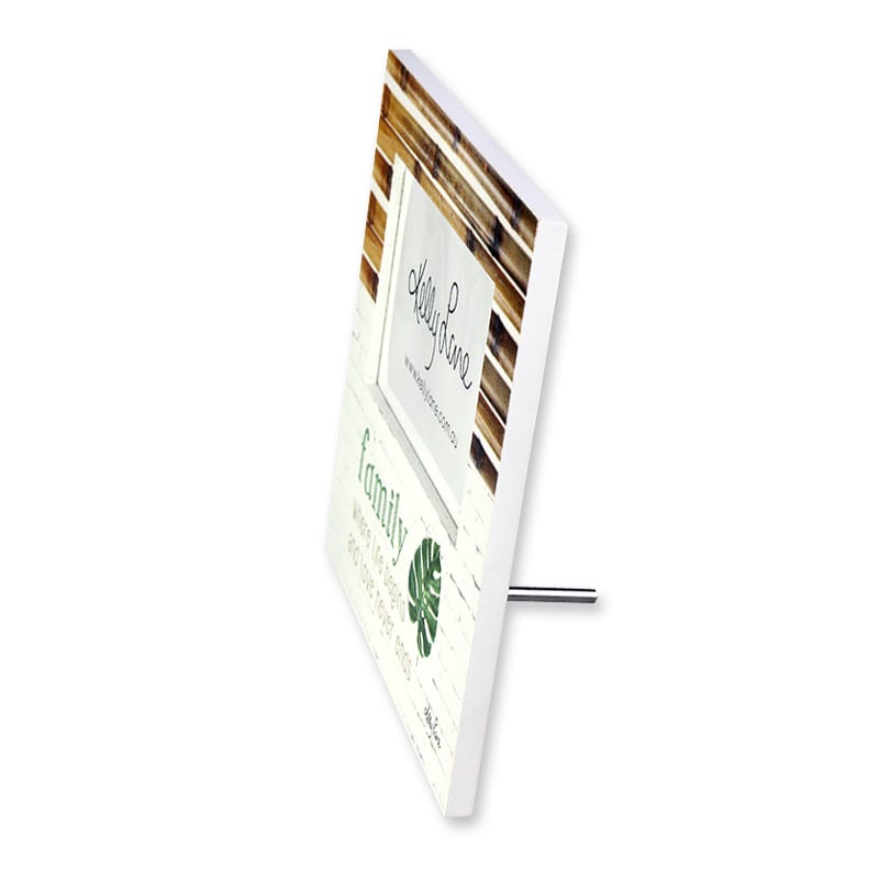 This Rio Family Photo Frame can be used for storing photo and home decoration. A rod is included to be attached at the back for standing on flat surface such as on the shelf or table top while there is a nail slot if you want to hang it on the wall. It is made of MDF material with a white background with bamboo and tropical leaves print.