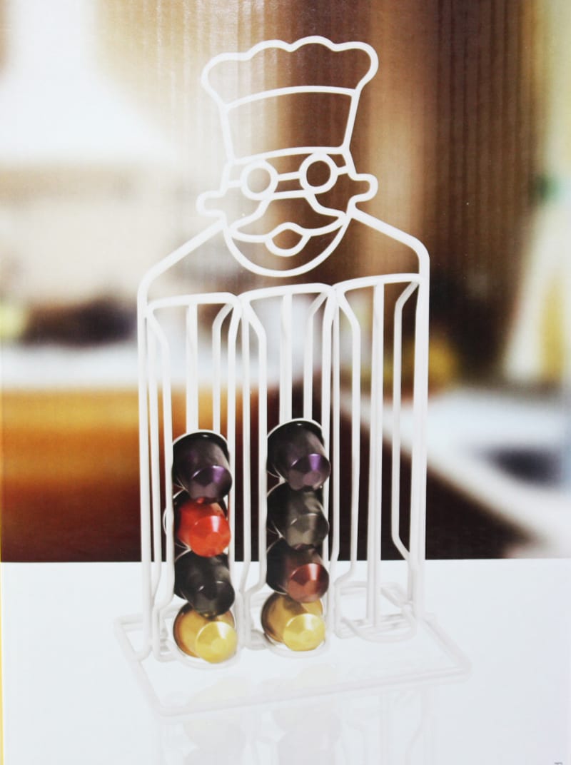 This sleek, modern design will complement any kitchen decor. This holder holds 36 Nespresso capsule refill tubes, keep the capsule carousel neat and organized.