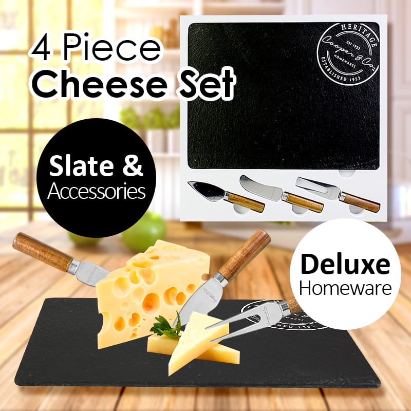 4 Piece Slate & Accessories Deluxe Cheese Set