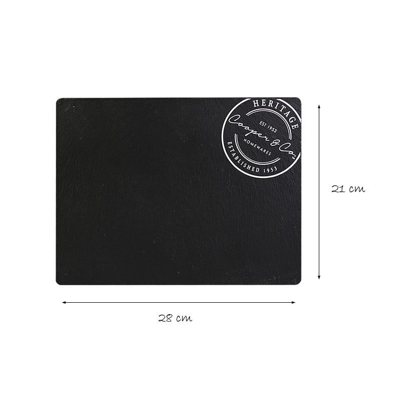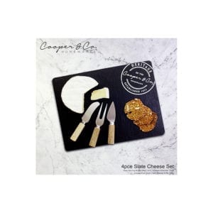 Entertain in style with this 4 Piece Slate & Accessories Deluxe Cheese Set. It features a 28 cm slate serving board, a 12 cm cheese knife, a 13 cm spreader and fork. This cheese set is one of the great selection of cheese boards, knives and accessories from Cooper & Co.. Idea for every occasion, Cooper & Co. is all about entertaining and enjoying great food with family and friends. Combining on-trend natural materials including wood, marble, stone, slate, ceramic and glass with great design, Cooper & Co. is contemporary homewares for home entertaining.