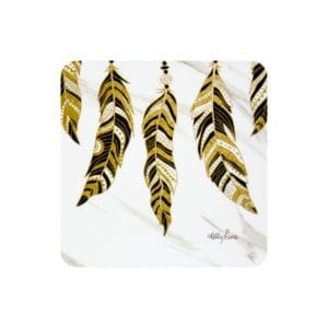 These coasters boast an artistic rendition of the simple leave on a golden beige background. These coasters feature a cork back to protect furniture and table tops. They are fun, functional and perfect for your next party or simply lounging at home with a drink. Don’t forget the pick up the matching placemats!