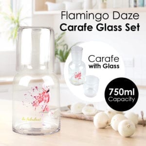 Be fabulous and add a little zest to your life with this 750ml Flamingo Daze Carafe Glass Set. Inspired by the traditional sets used in the South of France during the 1900’s that is commonly displayed on bedside tables at night, this carafe set features a glass on top of the carafe to keep dust out. Fill it with water, juice, wine or any favourite drinks of yours and enjoy yourself. Be fabulous this summer.
