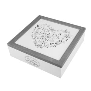 Store your favourite tea bag collection in this A Good Day Wooden Tea Bag 9 Section Storage Box. These beautiful and functional tea bag storage box features a cutout wooden art on the lid and it is made of wood. The box is divided into 9 sections. Place your tea bags in the box and place it around your kitchen or coffee table to enjoy a cup of tea anytime anywhere at home.