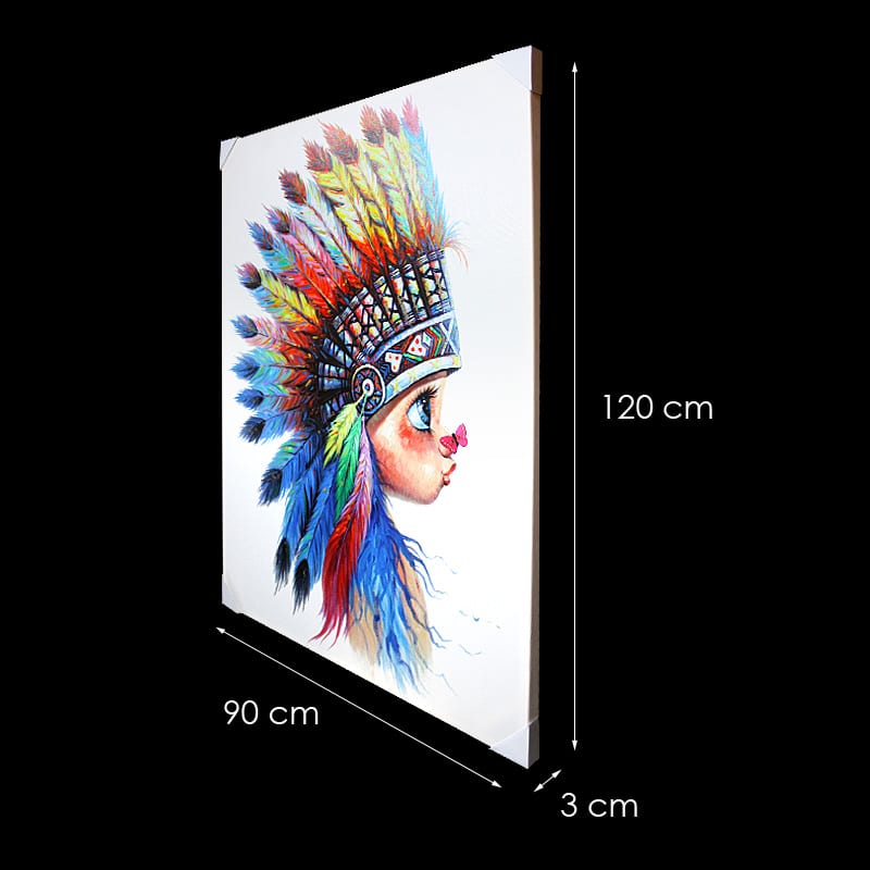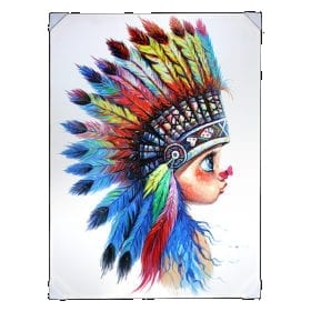 Create a colourful and cheerful home with this Native Print Canvas Art. This printed art features a cartoony Native American girl with her feathered headband of different colours and a butterfly on her nose. It includes some screws so that you can hang it on the wall. Get one now to make your house artsy and relaxing.