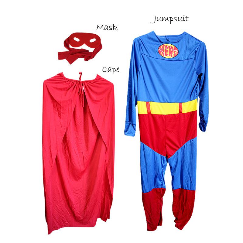 Adult Costume Superhero Man Jumpsuit Cape Mask Clothes Fun Party Accessories