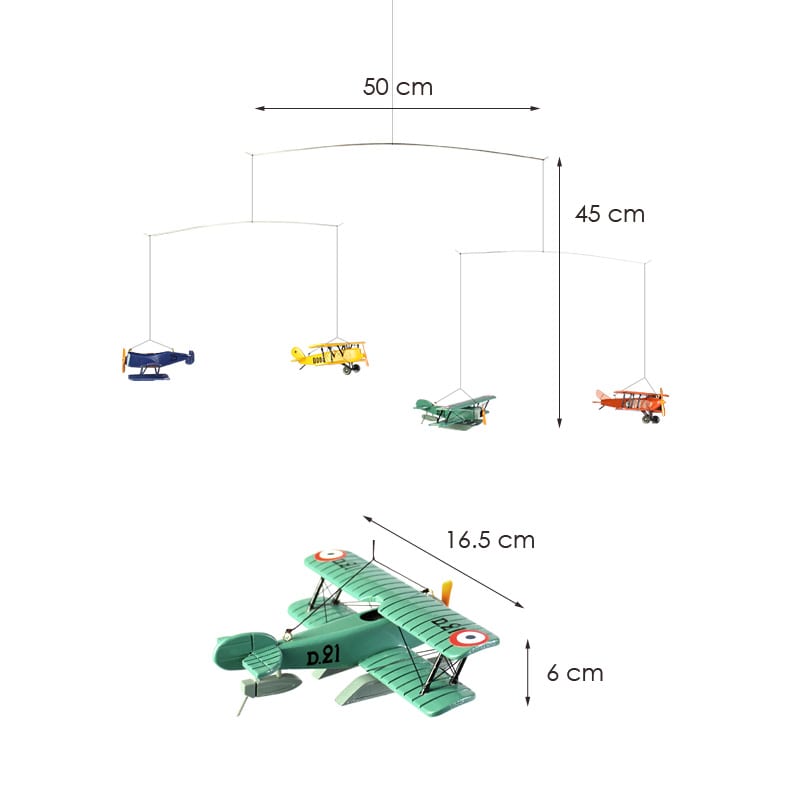 This Authentic Models Flight Mobile 1920 Vintage Airplanes Hanging Decor features 4 different colours vintage airplanes. It is suitable to be hung on the ceiling in your bedroom, study, high ceiling of the staircase or anywhere at home and office to add a touch of playfulness and elegance. This beautiful hanging decoration will make your place look a bit different than before in a good way by giving it a touch of vintage colour.