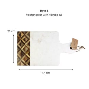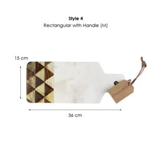 Serve your favourite food and dishes with this Boho 2-Tone Marble Serving Board. These stylish and functional serving board features 2-Tone materials where half of the surface is wooden texture while the rest of the coaster is marble material. There are 4 styles available and you can choose either Round, Rectangular, Rectangular with Handle (L) or Rectangular with Handle (M). Have a meal with this simple and yet classy serving board.