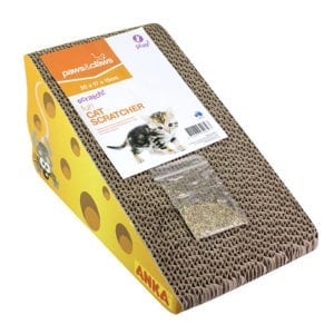 This Cheese Wedge Incline Cat Scratcher With Catnip are designed to encourage appropriate scratching behavior and satisfy your cats scratching instincts. Its cardboard material is environmental friendly and recyclable. The scratch pads are reversible for longer wear and extended use. It is ecologically responsible and a wonderful choice for your cat. It comes with a small packet of catnip so that your cat will be attracted to it and have more fun.