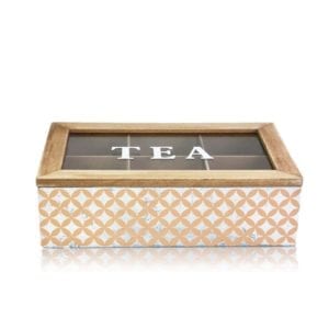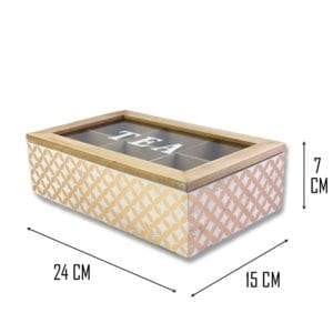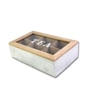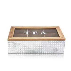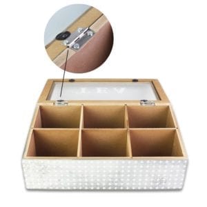 Stylish and vintage in color of Copper or Silver Wooden Tea Box Clear Top is easy and convenience for storing various tea bags to keep safe. It also would be a great decoration on your dinning table in kitchen room or office! There are six compartments with enough space for your tea bags.
