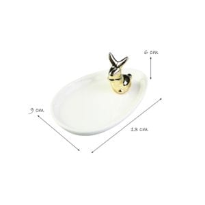 This Cute Gold Bunny Ceramic Trinket Dish Jewellery Tray has a shiny smooth appearance that is great for creating an elegant view at your home. It features a white ceramic tray with a little golden bunny. It is suitable for storing rings, necklace, keys or other trinkets and jewellery.