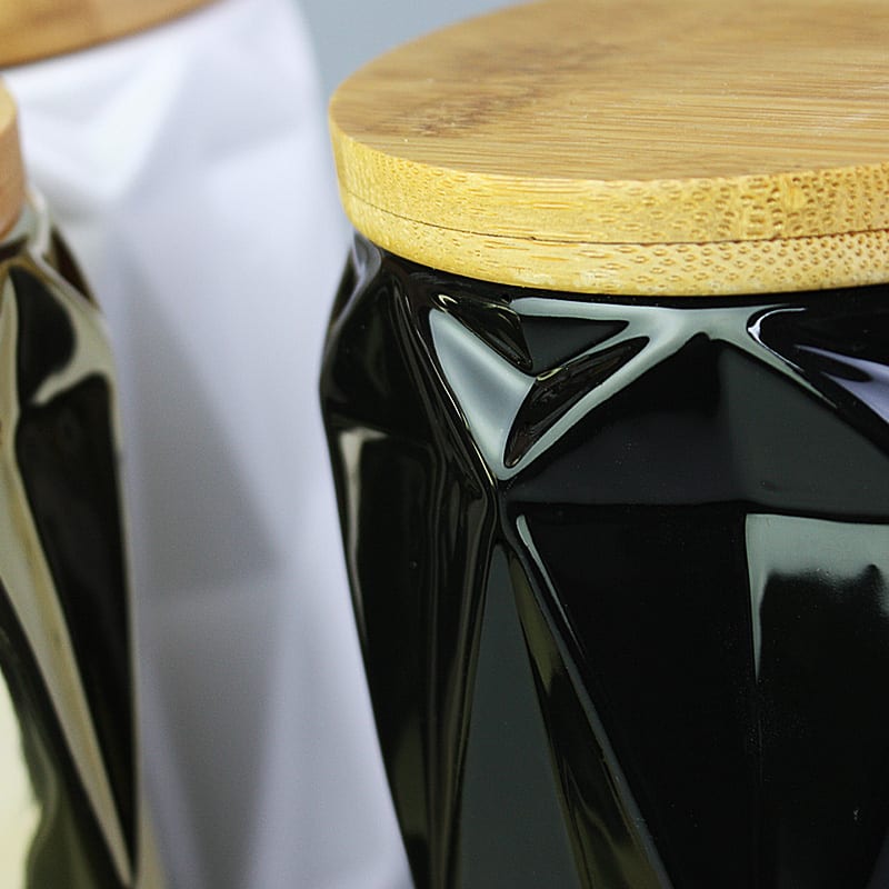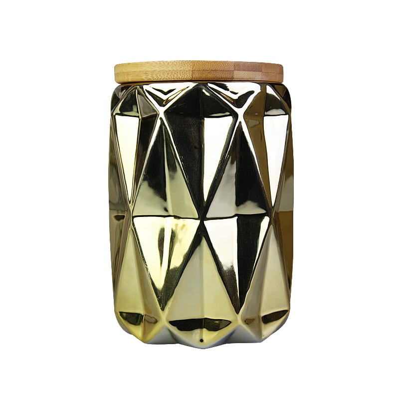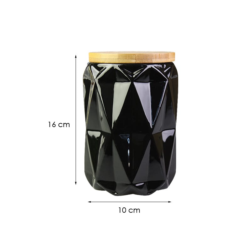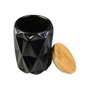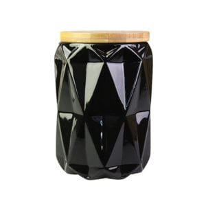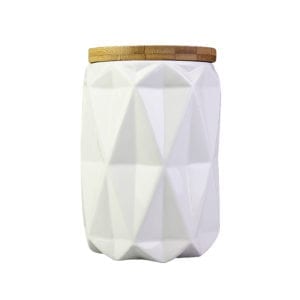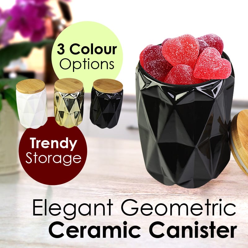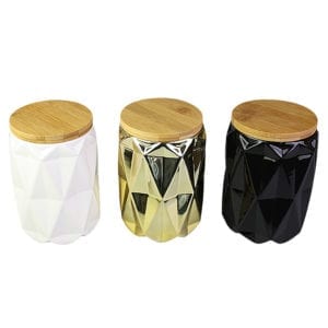 This Elegant Geometric Ceramic Canister has a trendy design. It has a beautiful shiny surface with sleek geometric texture. It can be used as a storage container for candies and small kick knacks or placed on the shelf or table as a trendy decoration.