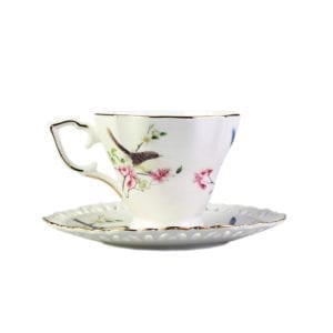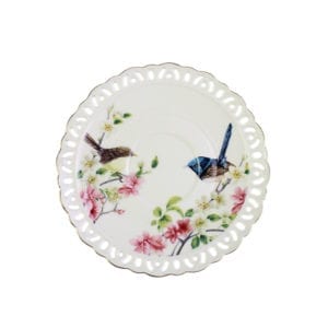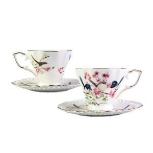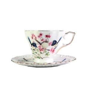 Tea party season is upon us! Set your table in beautiful, vintage European style with this Blue Wren Ceramic 2 Cups and 2 Saucers Set. The simplicity of the shape with the delicate pink blossom, twitter blue wrens and green leaves pattern make this set a wonderful choice for someone who prefers a less fussy, more tailored look. The gold rim edge lines make this set a bit more contemporary. This set served in beautiful gift box packing, ideal for Mother’s Day gift and good dessert time with family and friends!