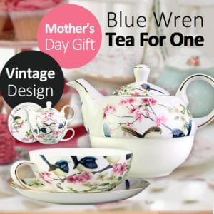 Tea party season is upon us! Set your table in beautiful, vintage European style with this Blue Wren Ceramic Tea Set which included 2 in 1 Tea Pot & Cup and Saucer. The simplicity of the shape with the delicate pink blossom, twitter blue wrens and green leaves pattern make this set a wonderful choice for someone who prefers a less fussy, more tailored look. The gold rim edge lines make this set a bit more contemporary. It’s served in beautiful gift box packing, ideal for Mother’s Day gift and good dessert time with family and friends with this awesome tea set!
