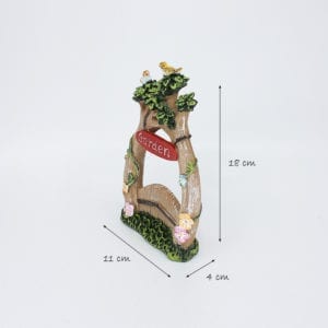 Bridge: 18 cm x 9 cm x 6 cm (W x H x L) Tree House: 10 cm x 10 cm x 8 cm (W x H x L) Welcome Tree: 13 cm x 19 cm x 6 cm (W x H x L) Garden Gate: 11 cm x 18 cm x 4 cm (W x H x L) |
