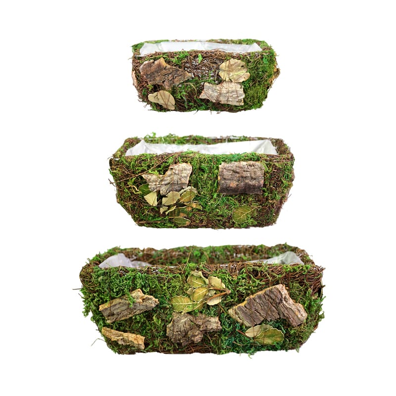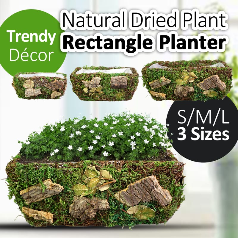 Natural Dried Plant Rectangle Planter 3 Sizes Set