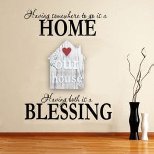 - White “Our House” sign with red heart