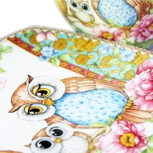 Tea party season is upon us! Set your table in beautiful, vintage European style with this Owl Illustration 2 Cups 2 Saucers Gift Box Set which included 2 cups and 2 saucers. The simplicity of the shape with the delicate pink blossom, twitter owls and green leaves pattern make this set a wonderful choice for someone who prefers a fairy tale, more tailored look. The brown rim edge lines make this set a bit more contemporary. This Teaware served in beautiful gift box packing, ideal for gift and good tea time with family and friends!