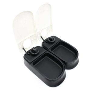 This Pawise 2-Meal Automatic Pet Feeder Food Dispenser Includes ensures your pet is well fed throughout the day. It makes sure your pets has their meal punctual by automatically opens at a programmed time. The timer ensures automatic opening at the set time. Each timer has a 48 hours time setting while each bowl holds 300ml of food. It can be used for both dry and wet food. Cool packs are included under the bowls to keep the wet food fresh. It also features anti-slip rubber feet to prevent the feeder from moving when your pets are eating. Requires 2x AA Batteries (NOT Included).