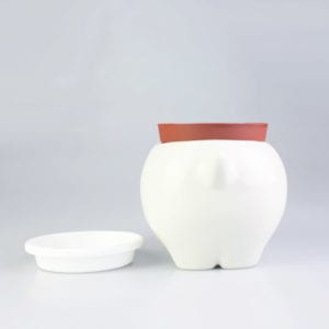 The delightful Peropons lap up water and miraculous feed the plant on their back. Only made possible by a clever felt tongue, which is secretly connected to the pot. Made of glazed ceramic, Peropons come complete with everything needed to grow (peat plug, seeds, plastic tray, and instructions). Easy to transplant by removing peat plug with plant and planting plug into a larger pot or the garden. A fun and amusing gift!