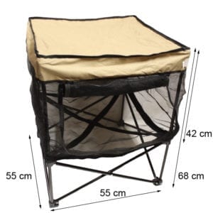 Portable and lightweight pet kennel keeps pets cool, safe and secure. Comes with convenient carry case. Take it to the beach, park, visits to friends, outdoor gatherings. Zippered door rolls up and secures in place with hook and loop closures.
