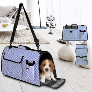 Portable Striped Zip-Up Pet Carrier Bag Cage