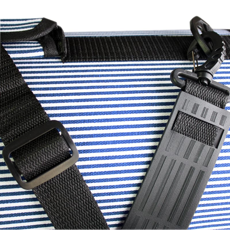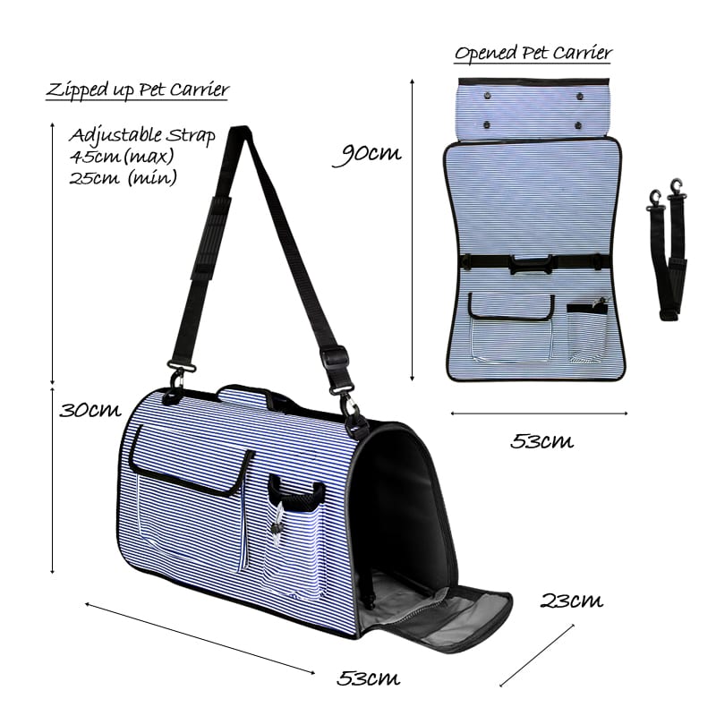 This Portable Striped Zip-Up Pet Carrier Travel Bag Cage is very convenient for your pet to travel with you. Side windows design ensure enough air ventilation while your pet staying inside. The long zip along the front and back mesh door can help the pet get in and out easily. The collar strap can secure your pet and carry it easily and safely. Also, the carrier is open-able, fold-able, and easy storage while not in use. Grab it up today, it will be your pet stylish cage!