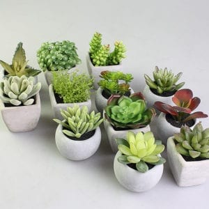 Set of 12 Mini Artificial Succulent in Cement Pot