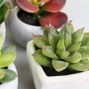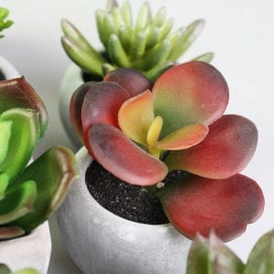 This Set of 12 Mini Cement Pot Realistic Artificial Succulent Plant features 12 natural looking mini size succulent plants in a square or round shape cement pots. They add colour and life in your house and make you feel connected with nature. They are also perfect for people who prefer creating a low maintenance garden where the plants need no watering and fertilising. Whether you place them along your window sill or on your decorative shelf, these cute indoor plant will sure to brighten your home. Let them add a touch of green in your living space.