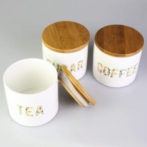 - Set of 3 canisters with Coffee, Sugar and Tea prints