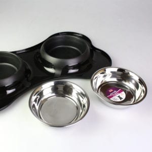 This Stainless Steel Pet Feeder Twin Bowl with Mat keeps the kibbles and water from spilling on your carpet or floor when your pets are having their meal. It features 2 separate removable food bowls on a mat that helps holding pieces of dropped food. It is anti skid that it prevent the bowl from sliding across the floor. It is also non toxic so that it is safe to use as a pet feeder. There are 3 colour options and you can choose either Red, Blue or Black.