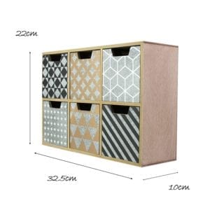 Modern Stylish Small Wooden Cabinet holds 6 drawers with different trendy modern patterns. Ideal for storing items like key, earphone, craft, card, and small little to keep safe. It also would be a great stylish decor on your table room house or office.