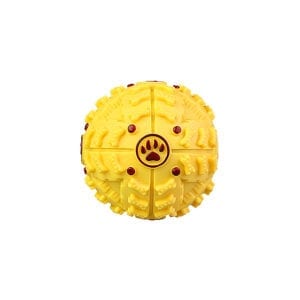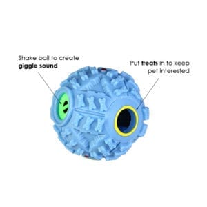This Tough Chew Toy Pet Treat Dispenser Giggle Ball is fun and challenging for your pet to play with. You can put treats into the ball and the treats will drop out bit by bit as your pet play and roll it around. Shake the ball to create cute, funny giggle sound. The tough material is durable for chewing. Get one and let your pet learn to get rewards while having fun.