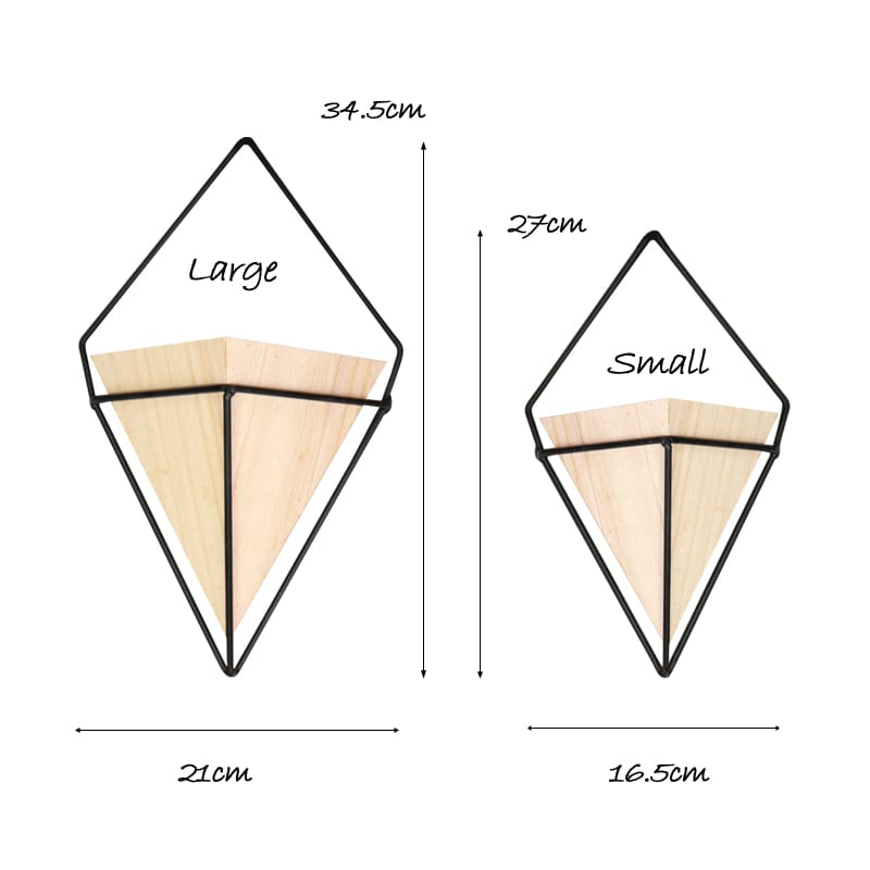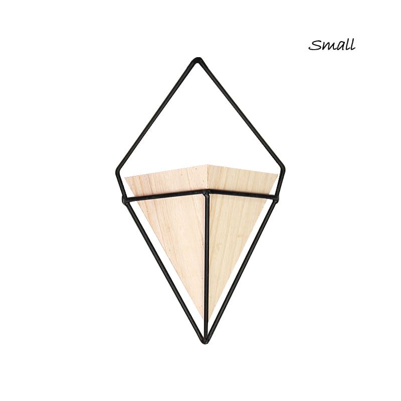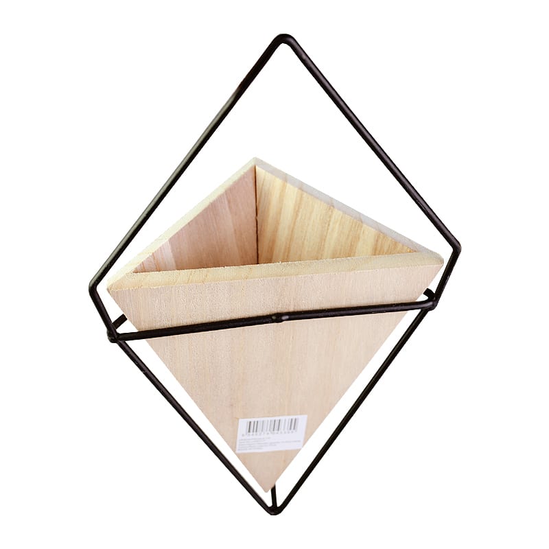 This elegant, natural Triangle Wooden Planter in Wire Frame represents modern, stylish and elegant. The geometric clean lines of black wire is perfect for matching with wooden planter, and it will be a fantastic décor at your home room or garden!
